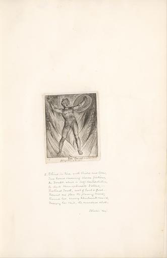 | Keywords: William Blake - For the Sexes- The Gates of Paradise, Plate 7, "Fire" - Google Art Project.jpg etching line engraving paper cream Etching and line engraving on moderately thick slightly textured cream wove paper London 1757 London 1827 William male 2369124 Blake British 1757 - 1827 /collection/yale-center-for-british-art/artwork/for-the-sexes-the-gates-of-paradise-plate-7-fire-william-blake/2384882/ William Blake Artist /artist/william-blake/4130035/ 4130035 /collection/yale-center-for-british-art/ Yale Center for British Art 2305845 http //britishart yale edu/ 2/23/2012 9 57 58 PM /collection/yale-center-for-british-art/artwork/for-the-sexes-the-gates-of-paradise-plate-7-fire-william-blake/2384882/ 1826 1826 flames men fire text shield sword historical subject Etching and line engraving on moderately thick slightly textured cream wove paper 349 2384882 False 1826 3/24/2012 4 29 17 PM YCBA/lido-TMS-3943 http //collections britishart yale edu/vufind/Record/1668279 Yale Center for British Art Paul Mellon Collection print 1820 1830 London Creation w238 x h349 cm 1826 False 0 646484375 Volume for-the-sexes-the-gates-of-paradise-plate-7-fire-william-blake For the Sexes The Gates of Paradise Plate 7 Fire f 238 Inscribed in graphite lower center 5 Blind in Fire with Shield and Spear Two horn'd reasoning cloven fictions In doubt which is self- contradiction A dark Hermaphrodite I stood -- Rational Truth root of Evil Good Round me flew the flaming sword; Round her snowy Whirlwinds roar'd Freezing her Veil the mundane shell Blake's 'Key' Inscription _Signed_and_Dated Not signed not dated Not on View Etching and line engraving on moderately thick slightly textured cream wove paper flames men fire text shield sword historical subject special url_id fQE-hE2BakmTGg PD-old-100-1923 1827 For the Sexes Ž Google Art Project works by William Blake |