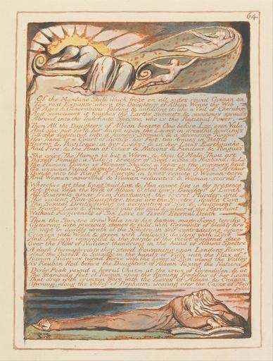Keywords: William Blake - Jerusalem, Plate 64, "Of the Mundane Shell...." - Google Art Project.jpg print orange pen ink black watercolor paper cream Relief etching printed in orange with pen and black ink and watercolor on moderately thick smooth cream wove paper London 1757 London 1827 William male 2369124 Blake British 1757 - 1827 /collection/yale-center-for-british-art/artwork/jerusalem-plate-64-of-the-mundane-shell-william-blake/2373622/ William Blake Artist /artist/william-blake/4130035/ 4130035 /collection/yale-center-for-british-art/ Yale Center for British Art 2305845 http //britishart yale edu/ 2/23/2012 9 47 25 PM /collection/yale-center-for-british-art/artwork/jerusalem-plate-64-of-the-mundane-shell-william-blake/2373622/ 1804 1804 to 1820 beard sun women men reading text nudes historical subject book Relief etching printed in orange with pen and black ink and watercolor on moderately thick smooth cream wove paper 203 2373622 False 1820 3/25/2012 6 00 54 PM YCBA/lido-TMS-3497 http //collections britishart yale edu/vufind/Record/1667785 Yale Center for British Art Paul Mellon Collection print 1800 1830 London Creation w146 x h203 cm 1804 to 1820 False 0 7578125 Volume jerusalem-plate-64-of-the-mundane-shell-william-blake Jerusalem Plate 64 Of the Mundane Shell j 146 No inscription Inscription _Signed_and_Dated Not signed not dated Not on View Relief etching printed in orange with pen and black ink and watercolor on moderately thick smooth cream wove paper beard sun women men reading text nudes historical subject book special url_id 1gGVVHG3kNVoEA PD-old-100-1923 1827 Jerusalem The Emanation of the Giant Albion - copy E 064 Google Art Project works by William Blake