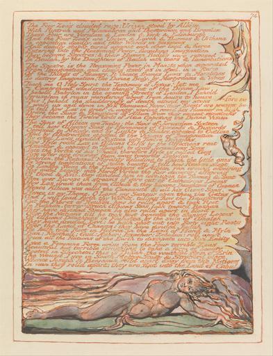 Keywords: William Blake - Jerusalem, Plate 74, "The Four Zoa's clouded rage...." - Google Art Project.jpg print orange pen ink black watercolor paper cream Relief etching printed in orange with pen and black ink and watercolor on moderately thick smooth cream wove paper London 1757 London 1827 William male 2369124 Blake British 1757 - 1827 /collection/yale-center-for-british-art/artwork/jerusalem-plate-74-the-four-zoas-clouded-rage-william-blake/2374562/ William Blake Artist /artist/william-blake/4130035/ 4130035 /collection/yale-center-for-british-art/ Yale Center for British Art 2305845 http //britishart yale edu/ 2/23/2012 9 47 40 PM /collection/yale-center-for-british-art/artwork/jerusalem-plate-74-the-four-zoas-clouded-rage-william-blake/2374562/ 1804 1804 to 1820 clouds branches women roots wings text vines nudes historical subject Relief etching printed in orange with pen and black ink and watercolor on moderately thick smooth cream wove paper 226 2374562 False 1820 3/24/2012 3 27 16 PM YCBA/lido-TMS-3508 http //collections britishart yale edu/vufind/Record/1667798 Yale Center for British Art Paul Mellon Collection print 1800 1830 Felpham Creation w165 x h226 cm 1804 to 1820 False 0 767578125 Volume jerusalem-plate-74-the-four-zoas-clouded-rage-william-blake Jerusalem Plate 74 The Four Zoa's clouded rage j 165 No inscription Inscription _Signed_and_Dated Not signed not dated Not on View Relief etching printed in orange with pen and black ink and watercolor on moderately thick smooth cream wove paper clouds branches women roots wings text vines nudes historical subject special url_id HgEzoPNyz-418g PD-old-100-1923 1827 Jerusalem The Emanation of the Giant Albion - copy E 074 Google Art Project works by William Blake |