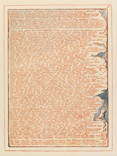 Keywords: William Blake - Jerusalem, Plate 43, "They saw their Wheels...." - Google Art Project.jpg print orange pen ink black watercolor paper cream Relief etching printed in orange with pen and black ink and watercolor on moderately thick smooth cream wove paper London 1757 London 1827 William male 2369124 Blake British 1757 - 1827 /collection/yale-center-for-british-art/artwork/jerusalem-plate-43-they-saw-their-wheels-william-blake/2388131/ William Blake Artist /artist/william-blake/4130035/ 4130035 /collection/yale-center-for-british-art/ Yale Center for British Art 2305845 http //britishart yale edu/ 2/23/2012 9 46 52 PM /collection/yale-center-for-british-art/artwork/jerusalem-plate-43-they-saw-their-wheels-william-blake/2388131/ 1804 1804 to 1820 clouds sky text vines robe gown historical subject Relief etching printed in orange with pen and black ink and watercolor on moderately thick smooth cream wove paper 223 2388131 False 1820 3/25/2012 6 21 38 PM YCBA/lido-TMS-3474 http //collections britishart yale edu/vufind/Record/1667760 Yale Center for British Art Paul Mellon Collection print 1800 1830 Felpham Creation w162 x h223 cm 1804 to 1820 False 0 75390625 Volume jerusalem-plate-43-they-saw-their-wheels-william-blake Jerusalem Plate 43 They saw their Wheels j 162 No inscription Inscription _Signed_and_Dated Not signed not dated Not on View Relief etching printed in orange with pen and black ink and watercolor on moderately thick smooth cream wove paper clouds sky text vines robe gown historical subject special url_id 3AGxFruFAdrXfQ PD-old-100-1923 1827 Jerusalem The Emanation of the Giant Albion - copy E 043 Google Art Project works by William Blake