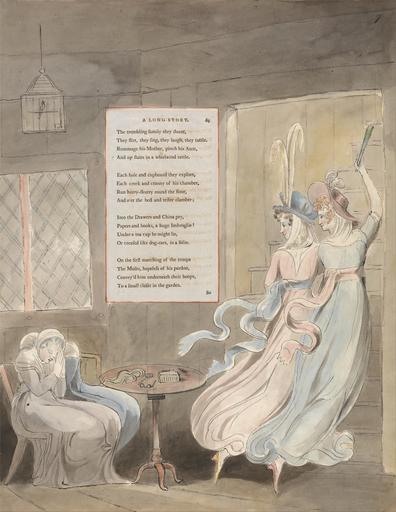 | Keywords: William Blake - The Poems of Thomas Gray, Design 29, "A Long Story." - Google Art Project.jpg watercolor pen ink black graphite paper cream Watercolor with pen and black ink and graphite on moderately thick moderately textured cream wove paper London 1757 London 1827 William male 2369124 Blake British 1757 - 1827 /collection/yale-center-for-british-art/artwork/the-poems-of-thomas-gray-design-29-a-long-story-william-blake/2370998/ William Blake Artist /artist/william-blake/4130035/ 4130035 /collection/yale-center-for-british-art/ Yale Center for British Art 2305845 http //britishart yale edu/ 2/23/2012 9 49 59 PM /collection/yale-center-for-british-art/artwork/the-poems-of-thomas-gray-design-29-a-long-story-william-blake/2370998/ 1797 between 1797 and 1798 bird lightning women window text vines chair desk table table hats dresses fan birdcage historical subject book Watercolor with pen and black ink and graphite on moderately thick slightly textured cream wove paper with inlaid letterpress page 419 2370998 False 1798 3/25/2012 9 04 28 PM YCBA/lido-TMS-3616 http //collections britishart yale edu/vufind/Record/1667896 Yale Center for British Art Paul Mellon Collection painting 1790 1800 London Creation w324 x h419 cm between 1797 and 1798 False 0 7734375 Volume the-poems-of-thomas-gray-design-29-a-long-story-william-blake The Poems of Thomas Gray Design 29 A Long Story p 324 Inscribed in black ink upper right 7 ; in graphite center + ; on verso in black ink upper left 8 ; in graphite center + Inscription _Signed_and_Dated Not signed not dated Not on View Watercolor with pen and black ink and graphite on moderately thick slightly textured cream wove paper with inlaid letterpress page bird lightning women window text vines chair desk table table hats dresses fan birdcage historical subject book special url_id 9gHWrkj9YZkyJQ PD-old-100-1923 1827 William Blake's illustrations to Thomas Gray's Poems Google Art Project works by William Blake |