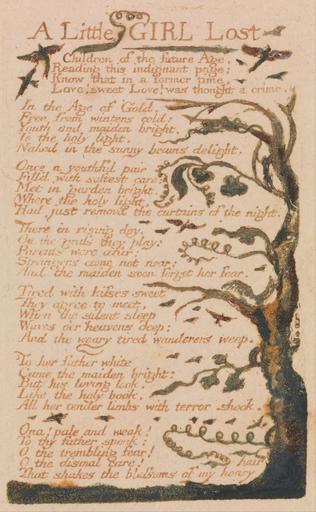 Keywords: William Blake - Songs of Innocence and of Experience, Plate 44, "A Little Girl Lost" (Bentley 51) - Google Art Project.jpg print color watercolor paper cream Color-printed relief etching with watercolor on moderately thick slightly textured cream wove paper London 1757 London 1827 William male 2369124 Blake British 1757 - 1827 /collection/yale-center-for-british-art/artwork/songs-of-innocence-and-of-experience-plate-44-a-little-girl-lost-bentley-51-william-blake/2362719/ William Blake Artist /artist/william-blake/4130035/ 4130035 /collection/yale-center-for-british-art/ Yale Center for British Art 2305845 http //britishart yale edu/ 2/23/2012 9 37 40 PM /collection/yale-center-for-british-art/artwork/songs-of-innocence-and-of-experience-plate-44-a-little-girl-lost-bentley-51-william-blake/2362719/ 1794 1794 birds branches leaf text vines historical subject Color-printed relief etching with watercolor on moderately thick slightly textured cream wove paper 121 2362719 False 1794 3/24/2012 2 17 18 PM YCBA/lido-TMS-2521 http //collections britishart yale edu/vufind/Record/1667392 Yale Center for British Art Paul Mellon Collection print 1790 1800 Felpham Creation w73 x h121 cm 1794 False 0 6171875 Volume songs-of-innocence-and-of-experience-plate-44-a-little-girl-lost-bentley-51-william-blake Songs of Innocence and of Experience Plate 44 A Little Girl Lost Bentley 51 s 73 Inscribed in graphite upper center 30 ; in graphite lower center 44 Inscription _Signed_and_Dated Not signed not dated Not on View Color-printed relief etching with watercolor on moderately thick slightly textured cream wove paper birds branches leaf text vines historical subject special url_id igEC5YUEWHr_xg PD-old-100-1923 1827 Songs of Innocence and Experience - Copy F Google Art Project works by William Blake |