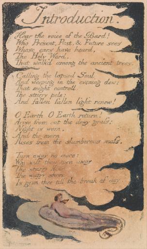 | Keywords: William Blake - Songs of Innocence and of Experience, Plate 34, "Introduction" (Bentley 30) - Google Art Project.jpg print color pen ink black watercolor paper cream Color-printed relief etching with pen and black ink and watercolor on moderately thick slightly textured cream wove paper London 1757 London 1827 William male 2369124 Blake British 1757 - 1827 /collection/yale-center-for-british-art/artwork/songs-of-innocence-and-of-experience-plate-34-introduction-bentley-30-william-blake/2372217/ William Blake Artist /artist/william-blake/4130035/ 4130035 /collection/yale-center-for-british-art/ Yale Center for British Art 2305845 http //britishart yale edu/ 2/23/2012 9 37 24 PM /collection/yale-center-for-british-art/artwork/songs-of-innocence-and-of-experience-plate-34-introduction-bentley-30-william-blake/2372217/ 1794 1794 clouds sky night stars men text bed pillow nudes historical subject blanket Color-printed relief etching with pen and black ink and watercolor on moderately thick slightly textured cream wove paper 127 2372217 False 1794 3/24/2012 3 04 35 PM YCBA/lido-TMS-2512 http //collections britishart yale edu/vufind/Record/1667382 Yale Center for British Art Paul Mellon Collection print 1790 1800 London Creation w73 x h127 cm 1794 False 0 591796875 Volume songs-of-innocence-and-of-experience-plate-34-introduction-bentley-30-william-blake Songs of Innocence and of Experience Plate 34 Introduction Bentley 30 s 73 Inscribed in graphite upper center 20 ; in graphite lower center 34 Inscription _Signed_and_Dated Not signed not dated Not on View Color-printed relief etching with pen and black ink and watercolor on moderately thick slightly textured cream wove paper clouds sky night stars men text bed pillow nudes historical subject blanket special url_id iQGUEVrKIGu-LQ PD-old-100-1923 1827 Songs of Innocence and Experience - Copy F Google Art Project works by William Blake |