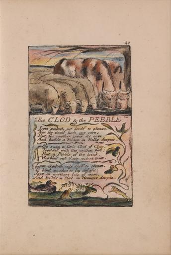 | Keywords: William Blake - Songs of Innocence and of Experience, Plate 40, "The Clod & the Pebble" (Bentley 32) - Google Art Project.jpg print brown pen ink black watercolor paper cream Relief etching printed in dark-brown with pen and black ink and watercolor on moderately thick slightly textured cream wove paper London 1757 London 1827 William male 2369124 Blake British 1757 - 1827 /collection/yale-center-for-british-art/artwork/songs-of-innocence-and-of-experience-plate-40-the-clod-amp-the-pebble-bentley-32-william-blake/2374814/ William Blake Artist /artist/william-blake/4130035/ 4130035 /collection/yale-center-for-british-art/ Yale Center for British Art 2305845 http //britishart yale edu/ 2/23/2012 9 52 28 PM /collection/yale-center-for-british-art/artwork/songs-of-innocence-and-of-experience-plate-40-the-clod-amp-the-pebble-bentley-32-william-blake/2374814/ 1789 1789 to 1794 cattle branches leaf duck sheep water text trees vines historical subject Relief etching printed in dark-brown with pen and black ink and watercolor on moderately thick slightly textured cream wove paper 114 2374814 False 1794 3/24/2012 3 29 08 PM YCBA/lido-TMS-3762 http //collections britishart yale edu/vufind/Record/1668007 Yale Center for British Art Paul Mellon Collection print 1780 1800 London Creation w73 x h114 cm 1789 to 1794 False 0 671875 Volume songs-of-innocence-and-of-experience-plate-40-the-clod-amp-the-pebble-bentley-32-william-blake Songs of Innocence and of Experience Plate 40 The Clod the Pebble Bentley 32 s 73 Inscribed in black ink upper right 40 Inscription _Signed_and_Dated Not signed not dated Not on View Relief etching printed in dark-brown with pen and black ink and watercolor on moderately thick slightly textured cream wove paper cattle branches leaf duck sheep water text trees vines historical subject special url_id KQG_7eAhqI9C5w PD-old-100-1923 1827 Songs of Innocence and Experience - Copy L Google Art Project works by William Blake |