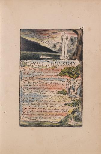 | Keywords: William Blake - Songs of Innocence and of Experience, Plate 38, "Holy Thursday" (Bentley 33) - Google Art Project.jpg print brown pen ink black watercolor paper cream Relief etching printed in dark-brown with pen and black ink and watercolor on moderately thick slightly textured cream wove paper London 1757 London 1827 William male 2369124 Blake British 1757 - 1827 /collection/yale-center-for-british-art/artwork/songs-of-innocence-and-of-experience-plate-38-holy-thursday-bentley-33-william-blake/2393104/ William Blake Artist /artist/william-blake/4130035/ 4130035 /collection/yale-center-for-british-art/ Yale Center for British Art 2305845 http //britishart yale edu/ 2/23/2012 9 52 22 PM /collection/yale-center-for-british-art/artwork/songs-of-innocence-and-of-experience-plate-38-holy-thursday-bentley-33-william-blake/2393104/ 1789 1789 to 1794 branches leaf dead mother children women text mountain vegetation tree vines gown nude historical subject Relief etching printed in dark-brown with pen and black ink and watercolor on moderately thick slightly textured cream wove paper 114 2393104 False 1794 3/25/2012 6 28 32 PM YCBA/lido-TMS-3759 http //collections britishart yale edu/vufind/Record/1668003 Yale Center for British Art Paul Mellon Collection print 1780 1800 Felpham Creation w73 x h114 cm 1789 to 1794 False 0 658203125 Volume songs-of-innocence-and-of-experience-plate-38-holy-thursday-bentley-33-william-blake Songs of Innocence and of Experience Plate 38 Holy Thursday Bentley 33 s 73 Inscribed in black ink upper right 38 Inscription _Signed_and_Dated Not signed not dated Not on View Relief etching printed in dark-brown with pen and black ink and watercolor on moderately thick slightly textured cream wove paper branches leaf dead mother children women text mountain vegetation tree vines gown nude historical subject special url_id YQEHZyDkVMqy1Q PD-old-100-1923 1827 Songs of Innocence and Experience - Copy L Google Art Project works by William Blake Songs of Experience - Holy Thursday |