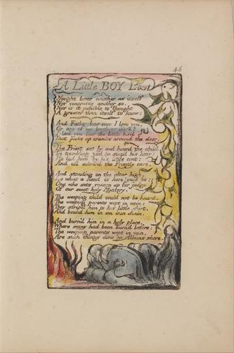 Keywords: William Blake - Songs of Innocence and of Experience, Plate 46, "A Little Boy Lost" (Bentley 50) - Google Art Project.jpg print brown pen ink black watercolor paper cream Relief etching printed in dark-brown with pen and black ink and watercolor on moderately thick slightly textured cream wove paper London 1757 London 1827 William male 2369124 Blake British 1757 - 1827 /collection/yale-center-for-british-art/artwork/songs-of-innocence-and-of-experience-plate-46-a-little-boy-lost-bentley-50-william-blake/2382580/ William Blake Artist /artist/william-blake/4130035/ 4130035 /collection/yale-center-for-british-art/ Yale Center for British Art 2305845 http //britishart yale edu/ 2/23/2012 9 52 39 PM /collection/yale-center-for-british-art/artwork/songs-of-innocence-and-of-experience-plate-46-a-little-boy-lost-bentley-50-william-blake/2382580/ 1789 1789 to 1794 kneeling leaf flames woman fire text vegetation vines shrouds historical subject mourning Relief etching printed in dark-brown with pen and black ink and watercolor on moderately thick slightly textured cream wove paper 108 2382580 False 1794 3/24/2012 4 14 42 PM YCBA/lido-TMS-3768 http //collections britishart yale edu/vufind/Record/1668013 Yale Center for British Art Paul Mellon Collection print 1780 1800 London Creation w70 x h108 cm 1789 to 1794 False 0 662109375 Volume songs-of-innocence-and-of-experience-plate-46-a-little-boy-lost-bentley-50-william-blake Songs of Innocence and of Experience Plate 46 A Little Boy Lost Bentley 50 s 70 Inscribed in black ink upper right 46 Inscription _Signed_and_Dated Not signed not dated Not on View Relief etching printed in dark-brown with pen and black ink and watercolor on moderately thick slightly textured cream wove paper kneeling leaf flames woman fire text vegetation vines shrouds historical subject mourning special url_id hgGALgpzgEBecg PD-old-100-1923 1827 Songs of Innocence and Experience - Copy L Google Art Project works by William Blake |