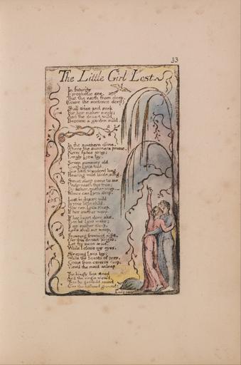 | Keywords: William Blake - Songs of Innocence and of Experience, Plate 33, "The Little Girl Lost" (Bentley 34) - Google Art Project.jpg print brown pen ink black watercolor paper cream Relief etching printed in dark-brown with pen and black ink and watercolor on moderately thick slightly textured cream wove paper London 1757 London 1827 William male 2369124 Blake British 1757 - 1827 /collection/yale-center-for-british-art/artwork/songs-of-innocence-and-of-experience-plate-33-the-little-girl-lost-bentley-34-william-blake/2386494/ William Blake Artist /artist/william-blake/4130035/ 4130035 /collection/yale-center-for-british-art/ Yale Center for British Art 2305845 http //britishart yale edu/ 2/23/2012 9 52 15 PM /collection/yale-center-for-british-art/artwork/songs-of-innocence-and-of-experience-plate-33-the-little-girl-lost-bentley-34-william-blake/2386494/ 1789 1789 to 1794 birds branches leaf kissing pointing serpent snake man woman text vegetation trees vines historical subject Relief etching printed in dark-brown with pen and black ink and watercolor on moderately thick slightly textured cream wove paper 111 2386494 False 1794 3/25/2012 6 17 42 PM YCBA/lido-TMS-3754 http //collections britishart yale edu/vufind/Record/1667998 Yale Center for British Art Paul Mellon Collection print 1780 1800 London Creation w67 x h111 cm 1789 to 1794 False 0 662109375 Volume songs-of-innocence-and-of-experience-plate-33-the-little-girl-lost-bentley-34-william-blake Songs of Innocence and of Experience Plate 33 The Little Girl Lost Bentley 34 s 67 Inscribed in black ink upper right 33 Inscription _Signed_and_Dated Not signed not dated Not on View Relief etching printed in dark-brown with pen and black ink and watercolor on moderately thick slightly textured cream wove paper birds branches leaf kissing pointing serpent snake man woman text vegetation trees vines historical subject special url_id 8QGI4RI4Fe2nQQ PD-old-100-1923 1827 Songs of Innocence and Experience - Copy L Google Art Project works by William Blake |