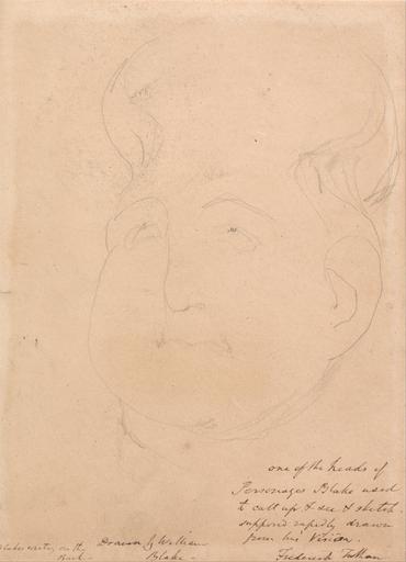 | Keywords: William Blake - A Visionary Head - Google Art Project.jpg Inscribed in brown ink lower left Blakes writing on the Back- ; in brown ink lower center Drawn by William Blake- ; in brown ink lower right one of the heads of Personages Blake used to call up see sketch supposed rapidly drawn from his Vision Frederick Tatham ; inscribed on verso in graphite center right Scale of Ten Feet Inscription _Signed_and_Dated Not signed not dated Not on View Graphite on medium moderately textured cream wove paper head face man monument sketch genre subject historical subject special url_id -gFbq9seEUCgzA PD-old-100-1923 1827 William Blake Google Art Project works by William Blake Visionary heads by William Blake Pencil drawings by William Blake |