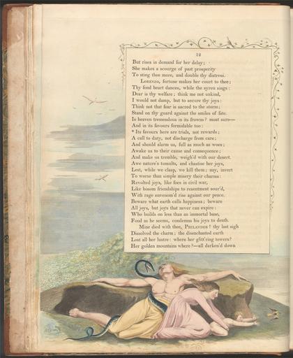 | Keywords: William Blake - Young's Night Thoughts, Page 12, "Its favours here are trials, not rewards" - Google Art Project.jpg ~ 1797 etching line engraving watercolor paper cream Etching and line engraving with watercolor on moderately thick slightly textured cream wove paper London 1757 London 1827 William male 2369124 Blake British 1757 - 1827 /collection/yale-center-for-british-art/artwork/youngs-night-thoughts-page-12-its-favours-here-are-trials-not-rewards-william-blake/2363404/ William Blake Artist /artist/william-blake/4130035/ 4130035 /collection/yale-center-for-british-art/ Yale Center for British Art 2305845 http //britishart yale edu/ 2/23/2012 9 34 36 PM /collection/yale-center-for-british-art/artwork/youngs-night-thoughts-page-12-its-favours-here-are-trials-not-rewards-william-blake/2363404/ 1792 ca 1797 birds sky serpents snakes children men women rocks text hills grass vines historical subject Etching and line engraving with watercolor on moderately thick slightly textured cream wove paper 425 2363404 False 1802 3/25/2012 9 02 50 PM YCBA/lido-TMS-2308 http //collections britishart yale edu/vufind/Record/1667265 Yale Center for British Art Paul Mellon Collection print 1790 1810 Felpham Creation w324 x h425 cm ca 1797 False 0 8203125 Volume youngs-night-thoughts-page-12-its-favours-here-are-trials-not-rewards-william-blake Young's Night Thoughts Page 12 Its favours here are trials not rewards y 324 No inscription Inscription _Signed_and_Dated Not signed not dated Not on View Etching and line engraving with watercolor on moderately thick slightly textured cream wove paper birds sky serpents snakes children men women rocks text hills grass vines historical subject special url_id UAFMul3qFAdkeQ PD-old-100-1923 1827 William Blake's illustrations to Young's Night Thoughts Google Art Project works by William Blake |