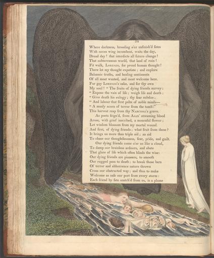 MAKE A MEME View Large Image William Blake - Young's Night Thoughts, Page 54, "The vale of death! that hush'd cimmerian vale" - Google Art Project.jpg ~ 1797 etching line engraving watercolor paper cream Etching and line engraving with watercolor on moderately thick ...