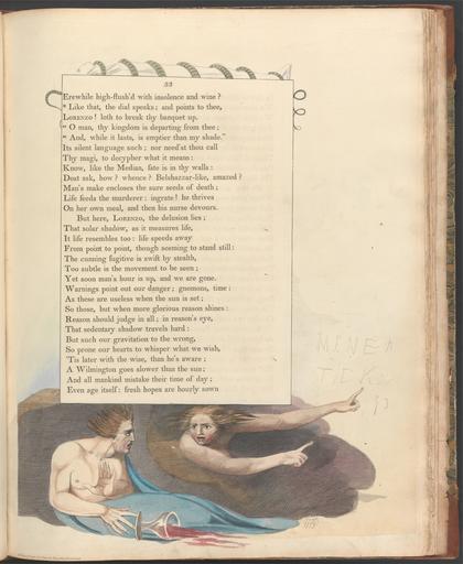 | Keywords: William Blake - Young's Night Thoughts, Page 33, "Like that, the dial speaks; and points to thee" - Google Art Project.jpg ~ 1797 etching line engraving watercolor paper cream Etching and line engraving with watercolor on moderately thick slightly textured cream wove paper London 1757 London 1827 William male 2369124 Blake British 1757 - 1827 /collection/yale-center-for-british-art/artwork/youngs-night-thoughts-page-33-like-that-the-dial-speaks-and-points-to-thee-william-blake/2353698/ William Blake Artist /artist/william-blake/4130035/ 4130035 /collection/yale-center-for-british-art/ Yale Center for British Art 2305845 http //britishart yale edu/ 2/23/2012 9 34 48 PM /collection/yale-center-for-british-art/artwork/youngs-night-thoughts-page-33-like-that-the-dial-speaks-and-points-to-thee-william-blake/2353698/ 1792 ca 1797 reclining dead pointing wine serpents snakes men death text beds goblets cups historical subject Etching and line engraving with watercolor on moderately thick slightly textured cream wove paper 425 2353698 False 1802 3/24/2012 1 29 47 PM YCBA/lido-TMS-2320 http //collections britishart yale edu/vufind/Record/1667273 Yale Center for British Art Paul Mellon Collection print 1790 1810 Felpham Creation w318 x h425 cm ca 1797 False 0 8203125 Volume youngs-night-thoughts-page-33-like-that-the-dial-speaks-and-points-to-thee-william-blake Young's Night Thoughts Page 33 Like that the dial speaks; and points to thee y 318 No inscription Inscription _Signed_and_Dated Not signed not dated Not on View Etching and line engraving with watercolor on moderately thick slightly textured cream wove paper reclining dead pointing wine serpents snakes men death text beds goblets cups historical subject special url_id 9AHqZrfQMB0uHQ PD-old-100-1923 1827 William Blake's illustrations to Young's Night Thoughts Google Art Project works by William Blake |