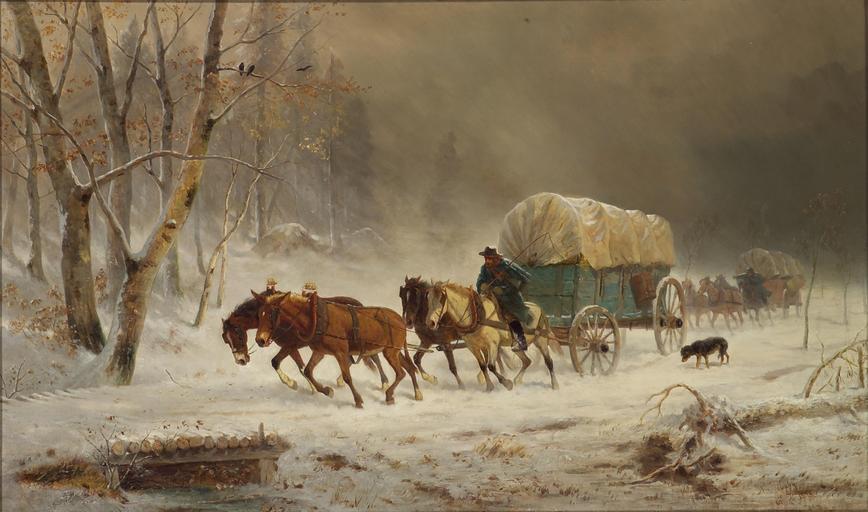 | Keywords: William Hahn - Going Home (Pioneers Braving a Storm).jpg Artwork creator William Hahn 1878 oil canvas in 24 40 object history Kral Fine Arts Oakland California; Private collection Northern California credit line Wm Hahn N J 1878 signed/date lower right accession number http //www bonhams com/auctions/13221/lot/92/ Bonhams PD-old-auto-1923 1887 William Hahn Images from Bonhams | ||||