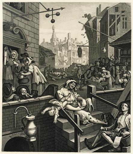 | Keywords: William Hogarth - Gin Lane.jpg Gin Lane from Beer Street and Gin Lane The accompanying poem not printed in this reissue reads Gin cursed Fiend with Fury fraught Makes human Race a Prey It enters by a deadly Draught And steals our Life away Virtue and Truth driv'n to Despair Its Rage compells to fly But cherishes with hellish Care Theft Murder Perjury Damned Cup that on the Vitals preys That liquid Fire contains Which Madness to the heart conveys And rolls it thro' the Veins La rue du Gin Gravure accompagnée d'un poème dans sa première édition Traduction du poème Le gin maudit démon empli de furie Fait de la race humaine une proie Il rentre en une gorgée mortelle Et vole a vie La Vertu et la vérité menées au désespoir Sa rage les fait fuir Mais il chérit avec un attention infernale Le vol le meurtre et le parjure Maudite coupe qui happe les vivants Ce liquide contient un feu Dont il mène la folie au coeur Et et le guide dans les veines Gin Lane El callejón de la ginebra - 1751 del pintor y grabador William Hogarth donde se ilustran los estragos y excesos de la ginebra en la Inglaterra del siglo XVIII La primera edición de este grabado fue acompañada por un poema cuya traducción al español serÃa la siguiente La ginebra maldito demonio lleno de furia Que hace de la raza humana su presa Que entra en un trago mortal Y vuela la vida La virtud y la verdad llevadas a la desesperación Su rabia las hace huir Pero ama con atención infernal El robo el homicidio y el perjurio Maldita copa que atrapa a los vivientes Ese lÃquido contiene un fuego Que lleva su locura al corazón Y le guÃa en las venas Reprint from circa 1880 in uploader's possession between 1750 1751 Original ; this print comes from a reengraving circa 1806-09 by Samuel Davenport from Hogarth's originals Etching and line engraving size mm 359 341 Institution Various collections object history credit line accession number PD-old-100 See also Image William Hogarth - Beer Street jpg GinLane jpg Assessments 5 2008 1 1 picture of the day 2008 05 04 Gin Lane 18th-century engravings WGA form graphics WGA type genre WGA School English WGA time period 1701-1750 Samuel Davenport |