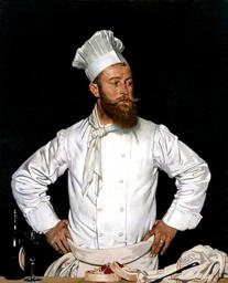 | Keywords: William Orpen Le Chef de l'Hôtel Chatham, Paris.jpg Artwork Q21409401 Creator William Orpen April 1921 Oil on canvas cm 127 0 102 5 Institution Royal Academy of Arts London accession number 03/1237 object history credit line Diploma Work given by Sir William Orpen R A accepted 1921 http //www racollection org uk/ixbin/indexplus _IXSR_ _rVDf11KzcY _IXSP_ 1 _MREF_ 22789 _IXSS_ _IXSESSION_ 3dvUNOmqdvKK1 26 252asform 3d 252fsearch_form 252fallform 26_IXresults_ 3dy 26exhibitions 3dtrue 26_IXACTION_ 3dquery 26all_fields 3dWILLIAM 2bORPEN 26archives 3dtrue 26_IX 252ey 3d0 26books 3dtrue 26_IX 252ex 3d0 26works 3dtrue 26_IXMAXHITS_ 3d18 26_IXTRAIL_ 3dSearch 2bResults _IXACTION_ display _IXSPFX_ templates/full/ _IXTRAIL_ Search+Results Royal Academy of Arts London source PD-old-auto-1923 1931 DEFAULTSORT Orpen William; Chef de l'Hôtel Chatham Paris; Royal Academy of Arts William Orpen Paintings in the Royal Academy of Arts 1920s oil on canvas paintings in the United Kingdom Portrait 1921 oil on canvas paintings Portrait 1921 portrait paintings Male 20th-century oil portraits of standing men at half length Both hands on hips Chef's hat Chefs in art Glass bottles in art Meats in art Paintings of men wearing hats Portrait paintings of bearded men Portrait paintings of men with tables Portrait paintings with black background Three-quarter view portrait paintings of men facing right White clothing in art male Work clothing |