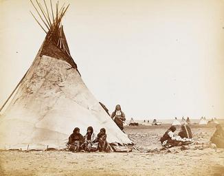 | Keywords: William S. Soule - Arapaho camp1.jpg ;Arapaho camp View of Camp Showing Three Girls and Group of Men in Native Dress One Man with Hairpipe Breastplate and Pipe-Tomahawk Outside Tipis; Tipis in Background 1867-75 <ref>National Anthropological Archives Smithsonian Institution http //siris-archives si edu/ipac20/ipac jsp uri full 3100001~ 39170~ 4 SPC BAE 3912-B Vol 1 01156800</ref> The Soule album identifies this simply as an Arapaho camp The tipis are in an open flat treeless plain The soil is sandy and the grass has either been worn away or cropped off by the Indian horse herds Some firewood must be available nearby as is seen from the log on which the women are seated The Indians are dressed in their best clothes for the picture-making but the three men on the right are indifferent to the work of the photographer being absorbed in a gambling game Smithsonian Institution Bureau of American Ethnology In Wilbur Sturtevant Nye Plains Indian raiders the final phases of warfare from the Arkansas to the Red River with original photographs by William S Soule University of Oklahoma Press 1st edition 1968 ISBN 0806111755 p338 Retrieved from National Anthropological Archives Smithsonian Institution http //siris-archives si edu/ipac20/ipac jsp uri full 3100001~ 39170~ 4 SPC BAE 3912-B Vol 1 01156800 Wilbur Sturtevant Nye Plains Indian raiders the final phases of warfare from the Arkansas to the Red River with original photographs by William S Soule University of Oklahoma Press 1st edition 1968 ISBN 0806111755 p339 decade 1870 Creator William S Soule reflist PD-old-auto-1923 1908 Arapaho Oklahoma in the 1870s William S Soule Tipis Sitting girls Bone breastplates Calumets pipe Tomahawks |