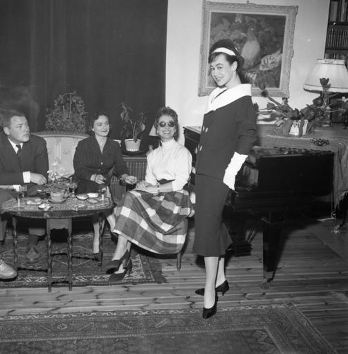 | Keywords: mote klær design art fashion clothes haute couturier monochrome groupshot people blackandwhite musician performer black and white Visning av William Duborgh Jensens aller første kolleksjon i Riddervoldsgate 9 på Frogner i Oslo, våren 1958. Modell: Lill-Ann Fotograf: Strand Arkivreferanse: PA-0797_Ud_2271_001_004 Visning av William Duborgh Jensens aller første kolleksjon i Riddervoldsgate 9 på Frogner i Oslo, våren 1958. Modell: Lill-Ann Fotograf: Strand Arkivreferanse: PA-0797_Ud_2271_001_004 |