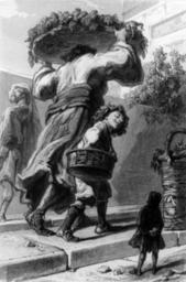 | Keywords: Willmann, Colin, & Outhwaite, Gulliver in Lorbrulgrud, cph.3b18903.jpg en Gulliver in Lorbrulgrud from an 1850s French edition of Gulliver's Travels LOC-image cph 3b18903 Engraving by Willmann Colin Outhwaite after Paul Gavarni decade 1850 Voyages de Gulliver 1850s PD-old |
