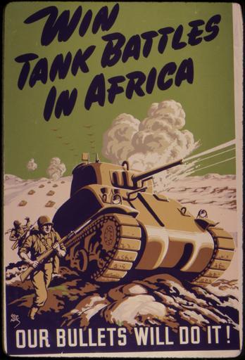 Keywords: Win tank battles in Africa. Our bullets will do it^ - NARA - 534786.jpg Scope and content General notes 534786 Local identifier 179-WP-935 Office for Emergency Management War Production Board 01/1942 - 11/03/1945 Still Picture Records Section Special Media Archives Services Division NWCS-S National Archives at College Park 8601 Adelphi Road College Park MD 20740-6001 other date circa 1942 1943 Record group Record Group 179 Records of the War Production Board 1918 - 1947 Record group ARC 508 War Production Board compiled 1942 - 1943 Series ARC 533858 File unit File unit ARC Variant control numbers NAIL Control Number NWDNS-179-WP-935 Other versions <gallery> File Win_tank_battles_in_Africa _Our_bullets_will_do_it _-_NARA_-_534786 tif tif File Win_tank_battles_in_Africa _Our_bullets_will_do_it _-_NARA_-_534786 jpg jpg </gallery> NARA-cooperation PD-USGov World War II posters from the United States |