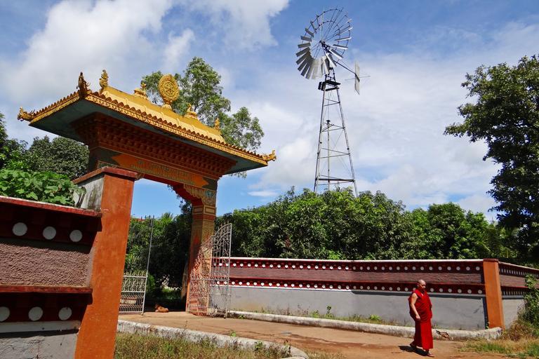 Keywords: wind mill wind power tibetan settlement gate ornate monk mundgod india