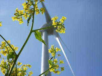 Keywords: wind pinwheel eco electricity energy energy supply nature yellow flower yellow flower sky blue bloom blossom bloom plant