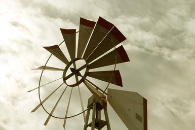 Keywords: wind windmill cloudy energy turbine rotating blades rural skyward farm blade turning spinning gray rustic spacing rotor