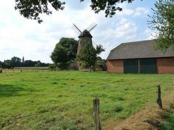Keywords: windmill mill barn fence niederrhein river landscape meadow historically