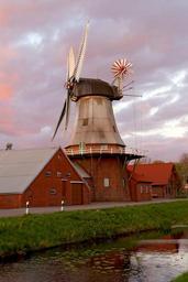 Keywords: windmill mill wing water sky clouds northern germany mood