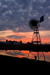 Keywords: windmill silhouette sunset sky landscape clouds agriculture rural energy power farm