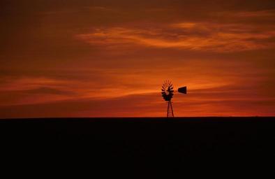 Keywords: windmill sunset western silhouette sky old vane landscape orange blades picturesque rural dusk twilight