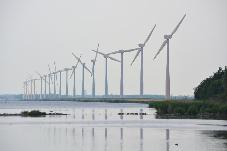 Keywords: windmills sea nature wind energy view netherlands zeewolde eemmeer