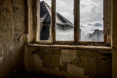 Keywords: window broken glass space light architecture old building old historically leave lapsed building lost place weird dilapidated past broken decay transience ailing run down atmosphere masonry