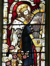 Keywords: window church window church glass color stained glass religion faith david king bible crown music instrument harp