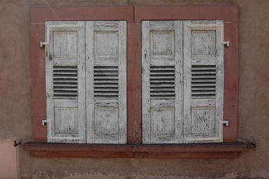Keywords: window double glazed windows facade home old lapsed run down bare building forget decay broken wood sand stone closed shutter shutters