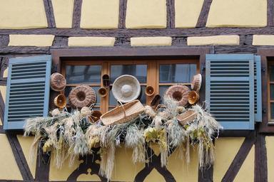 Keywords: window flower boxes ornament colmar old town truss france picturesque individual fachwerkhaus shutters historically yellow old beige brown brown home