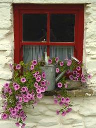 Keywords: window flowers window frames floral decorations ireland watering can idyll