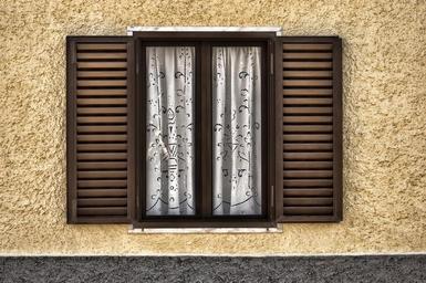 Keywords: window home yellow curtains yellow house portugal wall shutters