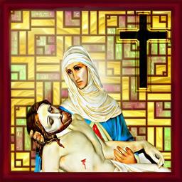 Keywords: window jesus maria jesus in the poor of maria death mourning grieving mother cry tears faith christ holy maria mother of god son of god religion hope christianity god christian church resurrection symbol cross love