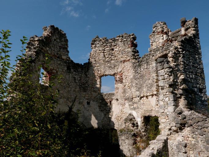 Keywords: window old stone ruins construction undergrowth covered