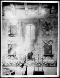 ''Window and paintings at side altar at Mission Santa Inez, ca.1900
