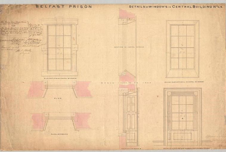 | Keywords: texture Collection: Antrim Crown and Peace -- Belfast Bridewell Records Date: c.1842 Original Format: Plan Plan of details of windows and central building, Crumlin Road Gaol -- drawn by Sir Charles Lanyon PRONI Ref: ANT/4/11/23 Copying and copyright: Please see www.proni.gov.uk/index/research_and_records_held/copying_... For Copy Orders, contact: Email: proni@dcalni.gov.uk Collection: Antrim Crown and Peace -- Belfast Bridewell Records Date: c.1842 Original Format: Plan Plan of details of windows and central building, Crumlin Road Gaol -- drawn by Sir Charles Lanyon PRONI Ref: ANT/4/11/23 Copying and copyright: Please see www.proni.gov.uk/index/research_and_records_held/copying_... For Copy Orders, contact: Email: proni@dcalni.gov.uk |