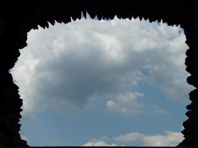 Keywords: window stone stone window by looking sky clouds burg metternich castle ruin metternich vineyards beilstein sachsen germany