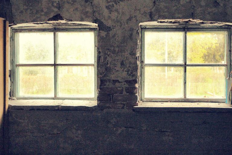 Keywords: windows glass house interior frame light building brick walls old