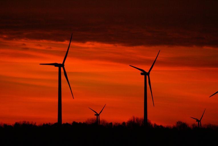 Keywords: windräder sun wind power wind energy clouds sunrise morning landscape light