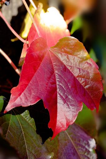 Keywords: wine partner autumn red leaves fall foliage coloring vitis vinifera colorful leaves violet green sun shine true leaves palmately-lobed