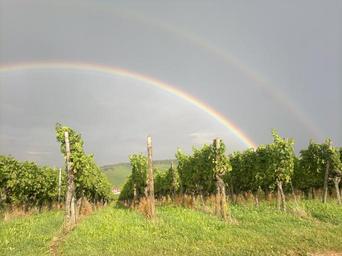 Keywords: winegrowing vineyard vines rainbow wine bright contrasts spectrum weather nature mood
