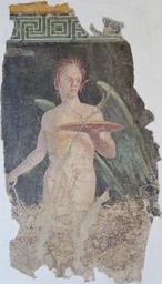 | Keywords: Winged genius Boscoreale Louvre P23.jpg Winged genius fragment Second-style mural painting Roman artwork late 1st century BC From the peristyle of the villa of P Fannius Synistor in Boscoreale near Pompeii Génie ailé fragment Peinture murale du second style œuvre romaine fin du Ier siècle ap J -C Provenance péristyle de la villa de P Fannius Synistor à Boscoreale près de Pompéi Museum Louvre Department of Greek Etruscan and Roman Antiquities Denon ground floor room 22 object history credit line Purchase 1903 accession number P 23 MND 613 Jastrow 2007 other versions Ancient Roman frescos from Boscoreale in the Louvre Ancient Roman frescos - Second style Genius Ancient Roman frescos in France Paris Roman antiquities in the Louvre - Room 22 Meanders with swastikas Mosaics of swastikas |