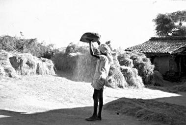 | Keywords: india mennonite board of missions mennoniteboardofmissions farmer rice winnowing winnow blackandwhite monochrome outdoor black and white Caption: A farmer winnowing his rice. Citation: Mennonite Board of Missions Photographs, 1898-1967. IV-10-007.2 Box 4 Folder 15. Mennonite Church USA Archives - Goshen. Goshen, Indiana. Caption: A farmer winnowing his rice. Citation: Mennonite Board of Missions Photographs, 1898-1967. IV-10-007.2 Box 4 Folder 15. Mennonite Church USA Archives - Goshen. Goshen, Indiana. |