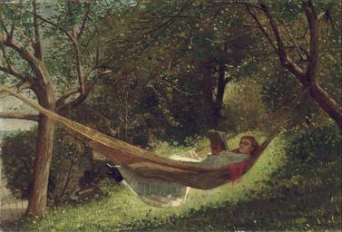 | Keywords: Winslow Homer - Girl in the Hammock.jpg Artwork Creator Winslow Homer Girl in the Hammock 1873 oil on canvas cm 33 66 50 17 Colby College Museum of Art credit line The Lunder Collection http //www colby edu/academics_cs/museum/search/Obj42 sid 1469 x 25995 The Colby College Museum of Art 2013 148 401146 Other versions http //toolserver org/~kolossos/image/zoomify php path http //its-embark colby edu 8080/WebKiosk/Zoom/2013 148_003_cd zoom 4 large Image c 3015×2020 px PD-old-100-1923 1910 Oil paintings by Winslow Homer 1870s paintings by Winslow Homer Colby College Museum of Art Paintings of women reading outdoors Paintings of girls 1873 paintings Images from Christie's |