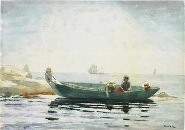 | Keywords: Winslow Homer - The Green Dory.jpg Artwork Creator Winslow Homer 1880 Watercolor pencil paper cm 34 9 49 9 institution Museum of Fine Arts Boston Not on view accession number 42 538 object history Lent by Dr Arthur T Cabot Jan 30 1911 Returned March 11 1911 Relent by Mrs Arthur Tracy Cabot June 28 1938 Returned January 17 1939 Bequest of Arthur Tracy Cabot Mrs Cabot waiving life interest November 12 1942 credit line Bequest of Dr Arthur Tracy Cabot exhibition history HOMER ~ lower right signature http //www mfa org/collections/object/the-green-dory-4827 Museum of Fine Arts Boston PD-old-100-1923 1910 DEFAULTSORT Homer Winslow; Boys in a Dory 1880; MFA Watercolor paintings by Winslow Homer Paintings by Winslow Homer in the Museum of Fine Arts Boston 1880s paintings by Winslow Homer 1880 Boys in a Dory MFA Dory boats in art |
