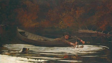 | Keywords: Winslow Homer - Hound and Hunter (1892).jpg Artwork Q20190316 Creator Winslow Homer 1892 oil canvas cm 71 8 122 3 Institution National Gallery of Art Gallery 68 credit line Gift of Stephen C Clark object history Consigned by the artist 1900-1902 to M Knoedler Co New York <br/>Louis Ettlinger 1845-1927 New York by 1908 and later his heirs<br/>sold 20 March 1946 to Stephen C Clark 1882-1960 New York<br/>gift 1947 to NGA Winslow Homer 1892 ~ lr signature / date accession number 1947 11 1 33970 PD-old-100-1923 DEFAULTSORT Homer Winslow; Adirondacks 1892; NGA 1890s paintings by Winslow Homer 1892 Adirondacks NGA Paintings by Winslow Homer in the National Gallery of Art Oil paintings by Winslow Homer Hunting in art 1892 paintings |